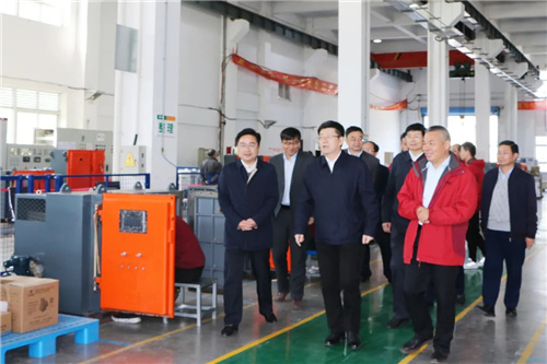 4月9日上午,新任淮南市委书记任泽锋、市委副书记徐礼国率市发改、经信、高新区管委会负责同志莅临万泰股份视察调研企业经营发展情况。